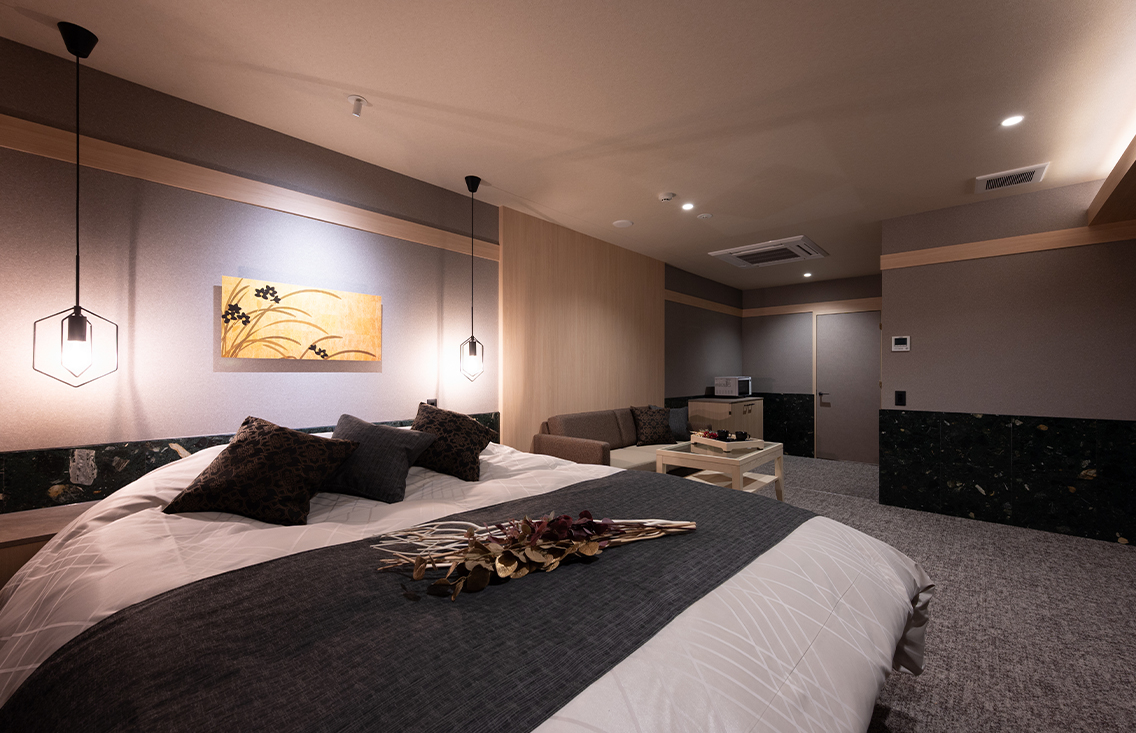 お二人でのご利用はもちろん、ひとりでも自由に使える場所に。レジャーホテルの枠に留まらない、贅沢なサービスとデザインを。お客様の大切な時間を過ごすにふさわしい空間を… そんな想いからゼン奈良宝来は生まれました。